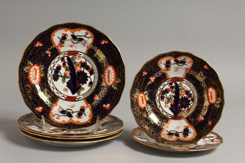 ROYAL CROWN DERBY, RARE PATTERN, 4591, comprising of four medium plates and two small plates (6).