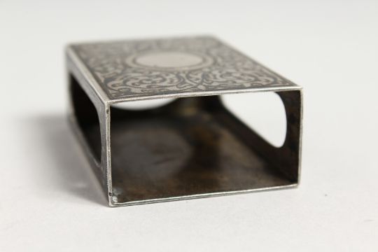 A RUSSIAN SILVER AND NIELLO MATCH BOX COVER with a horse and sleigh. 2.25ins x 1.5ins.