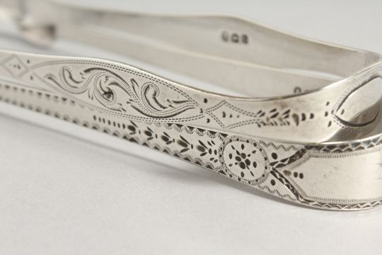 TWO GEORGE III BRIGHT CUT SUGAR TONGS.