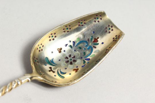 A RUSSIAN SILVER AND ENAMEL SPOON.
