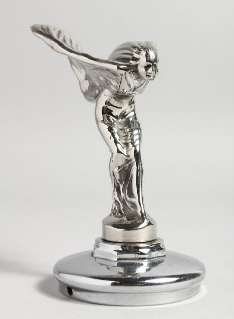 CHARLES SYKES. SPIRIT OF ECSTASY MASCOT DESIGN in 1911, silver plated mounted on the cap.