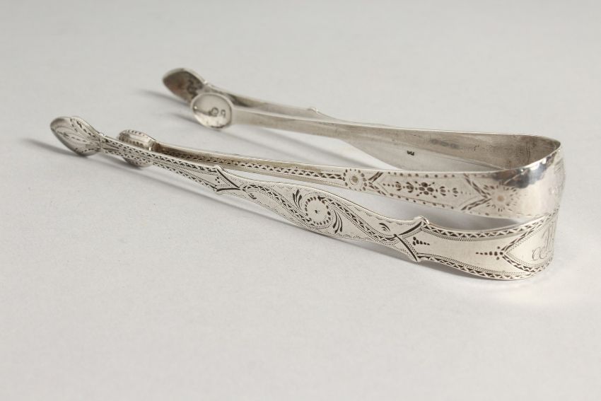 TWO GEORGE III BRIGHT CUT SUGAR TONGS,