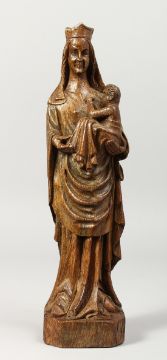 A SMALL 18TH CENTURY CARVED WOOD VIRGIN AND CHILD. 12ins high.