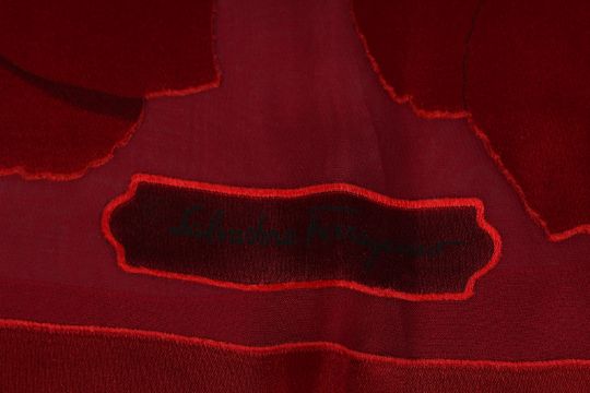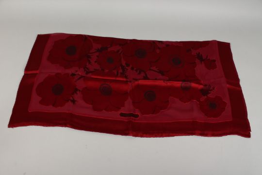 A SALVATORE FERRAGAMO SILK SCARF, multi coloured, red poppies.