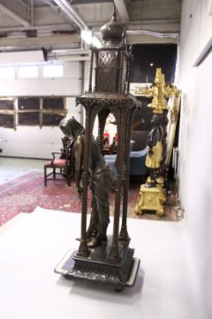 A SUPERB LARGE 19TH CENTURY FRENCH BRONZE OF AN ISLAMIC YOUNG LADY standing in an arbour with four columns, with shaped top.