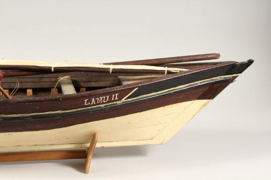 A WOODEN PAINTED DHOW, from Lamu. 30ins long.