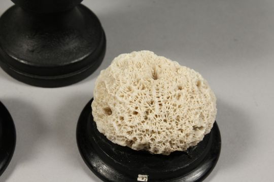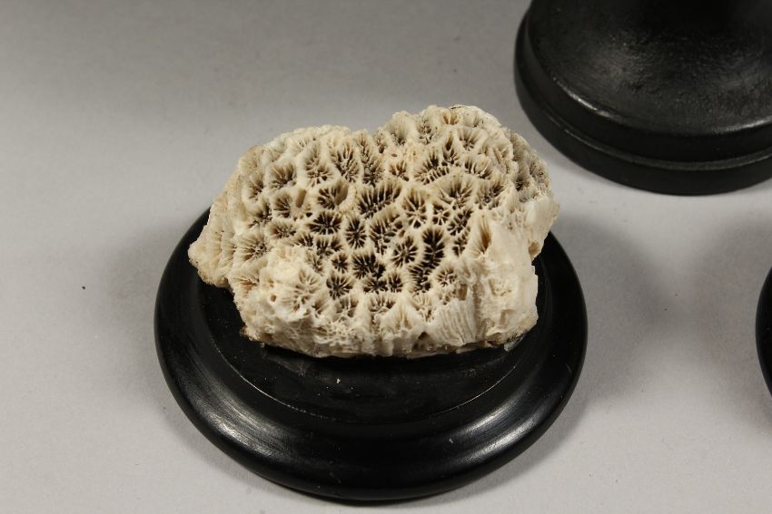 THREE SMALL CORAL SPECIMEN on wooden bases.