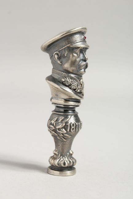 A RUSSIAN SILVER DESK SEAL as a man, with diamond leaves. 3ins high.