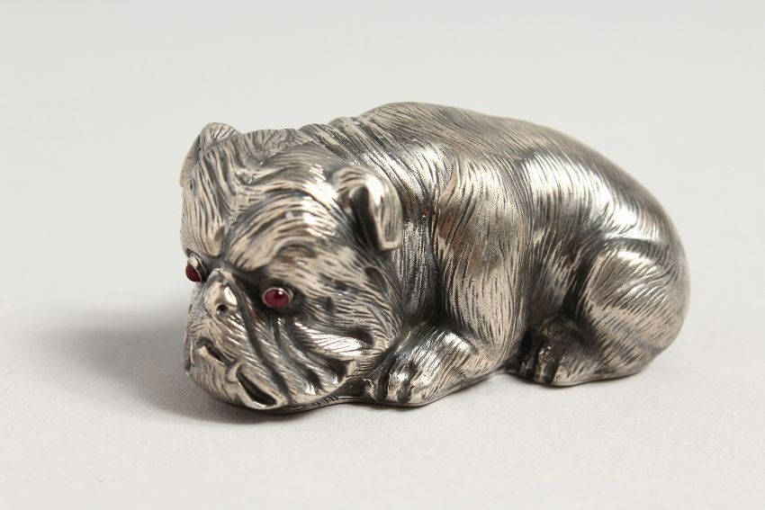 A RUSSIAN SILVER DOG with blue eyes