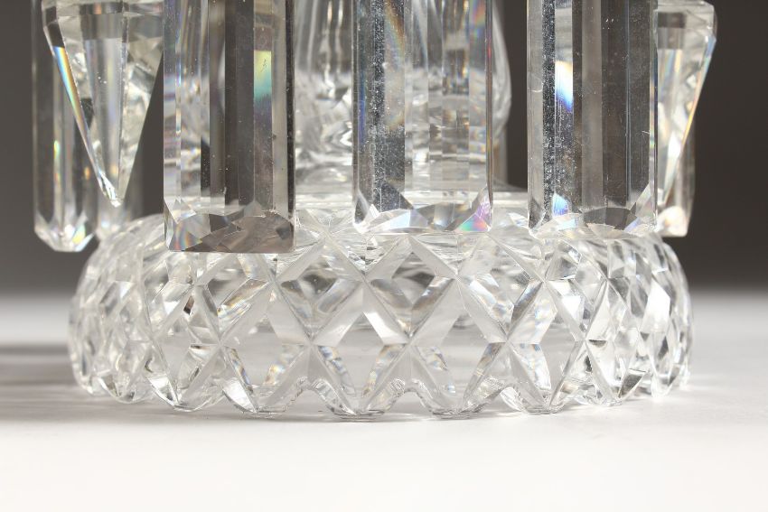 A GOOD PAIR OF CRYSTAL LUSTRES WITH PRISM DROPS.