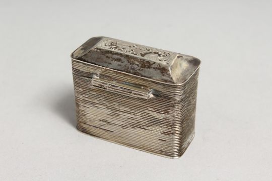 A DUTCH SILVER BOX with engraved top and reeded sides, circa 1800.