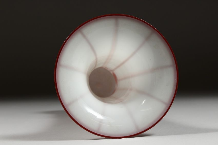 A FROSTED GLASS VASE with red decoration.
