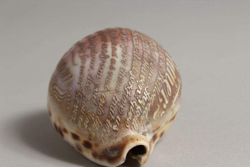 A SHELL CARVED WITH THE LORD'S PRAYER. 4ins.