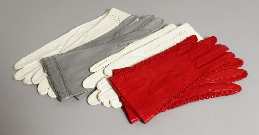 FOUR PAIRS OF LEATHER GLOVES, purchased from Harrods, London.