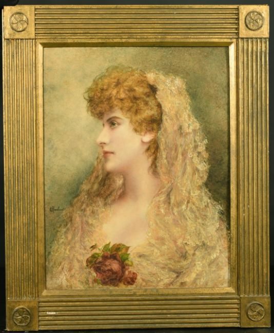 Alice Renshaw (19th Century) British, a head and shoulders profile of a young woman with a rose, watercolour, signed, 21" x 17".