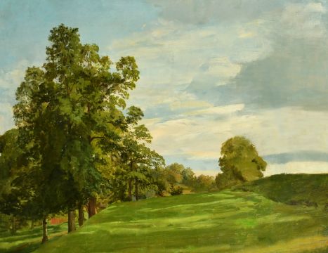 19th Century School, trees beside open parkland, oil on canvas, 23" x 29".