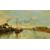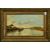 Marcel Debut (1865-1933) French, barges moored on a river with buildings lining the tow path, oil on panel, signed, 10.75" x 18".