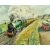 David Barnes, 'The Competition', train on the tracks and bus on the road, acrylic, signed, 13.25" x 17.25".
