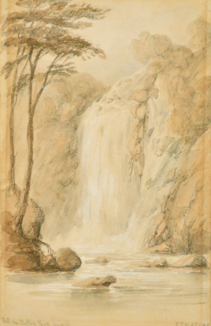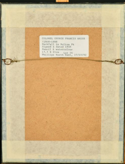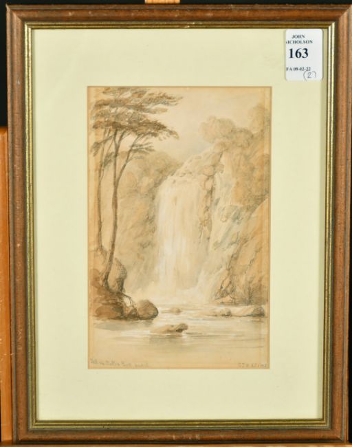 Lieutenant-Colonel George Francis White (1808-1898), A view of Finkale Abbey, Durham, pencil and ink, titled, 4.25" x 6.75" and another by the same hand, the Falls in Bolton Park, pencil and watercolour, titled, signed and dated 1838, 6.75" x 4.25", (2)