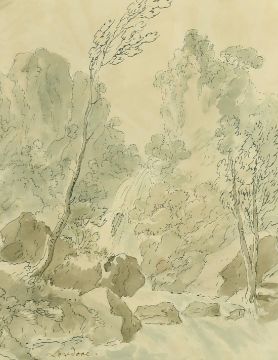 Edmund Becker (fl.c.1770-1800) Lodore Falls, Keswick, Lake District, pen and ink with grey wash, 9" x 7".