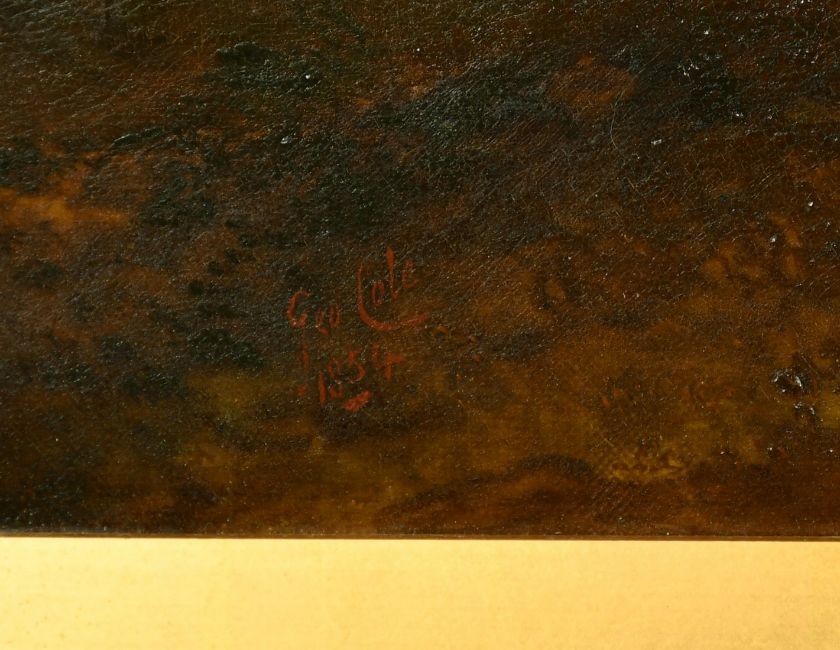 George Cole (1810-1883) British, wayfarers on a county path at Dusk with a windmill beyond, oil on canvas, signed and dated 1854, 17" x 25".