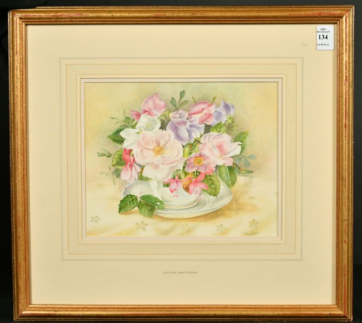Filippa Whitford (20th Century) British, A still life of mixed flowers in a cup, watercolour, signed, 8" x 10".