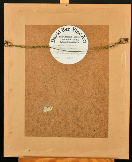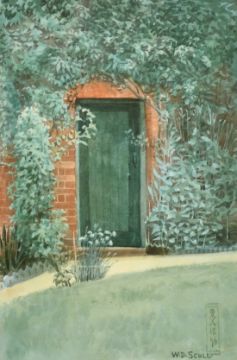 Walter Delaplaine Scull (Exhib. 1886-1890) Door at the Pines, Langland Gardens, Hampstead 1896, signed and dated, watercolour, trade label verso, David Ker Fine Art, London, 7.25" x 4.75".