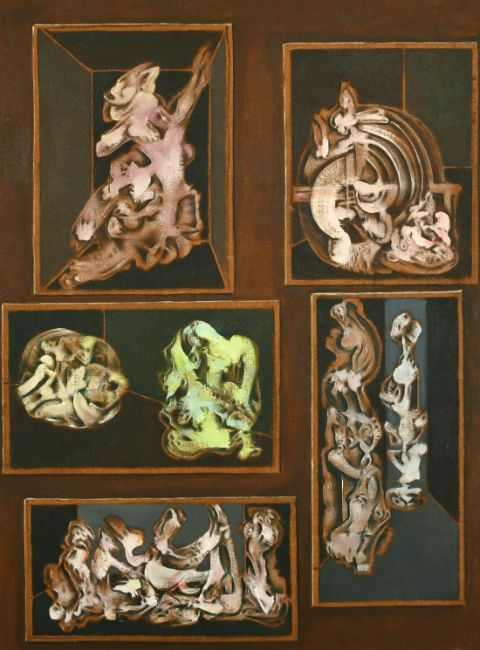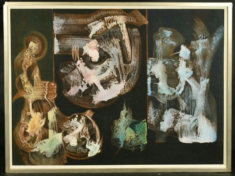 Robert Floris Van Eyck (1916-1991) Dutch, A tryptic of abstract forms, oils on board, all signed verso, 47.5" x 36" x 2, 36" x 47.5", (3).