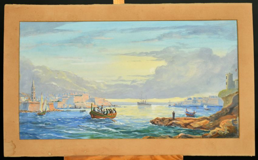 G. Gianni (19th/20th Century) Malta, figures on a boat in a Maltese harbour, watercolour, signed, 9" x 16.25", (unframed).