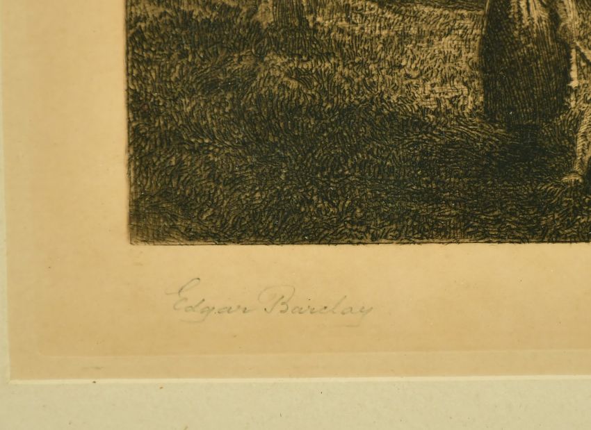 Edgar Barclay (1842-1913) British, 'The Cloverfield', an arable farming scene with figures and a donkey, etching, signed in pencil, 10" x 15".