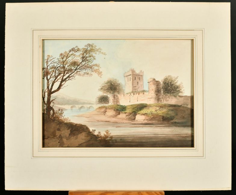Attributed to William Payne (1760-1830) A riverside castle, watercolour with faint pencil, 9.75" x 14".