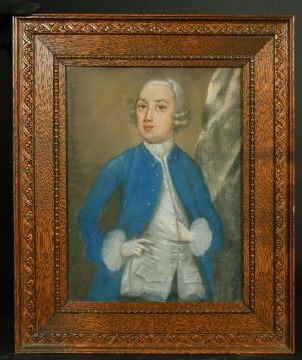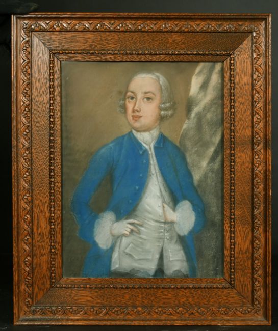 18th Century School, a half-length pastel portrait of a gentleman in a blue jacket, 13.5" x 10".