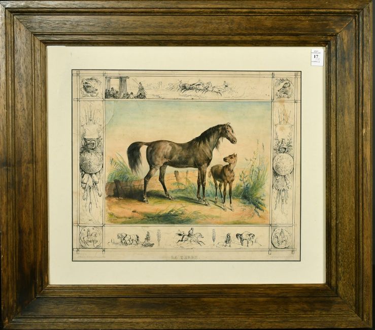 Le Marchand de Chevaux and La Terre, a pair of coloured prints, each 14" x 16.5". (2).
