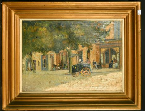 Continental School, (Late 19th Century/ Early 20th Century) Figures on a busy street, oil on canvas, 19.5" x 27.5".