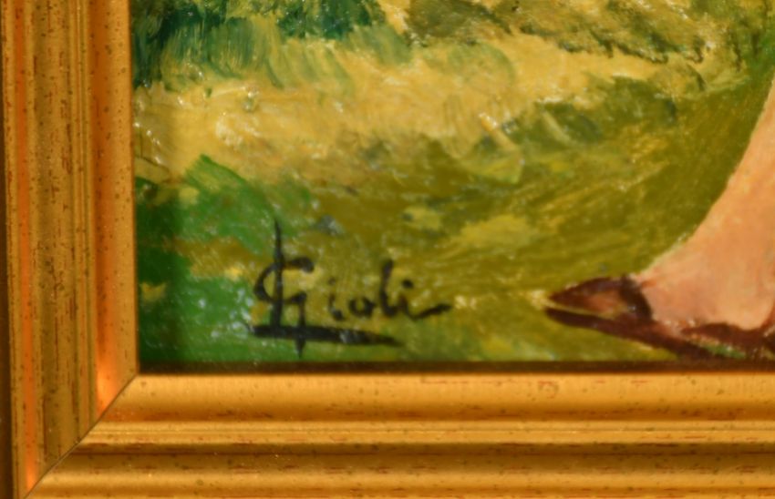 Luigi Gioli (1854-1947) Italian, a female figure in a deck chair reading, oil on canvas, signed, 7" x 9.25".
