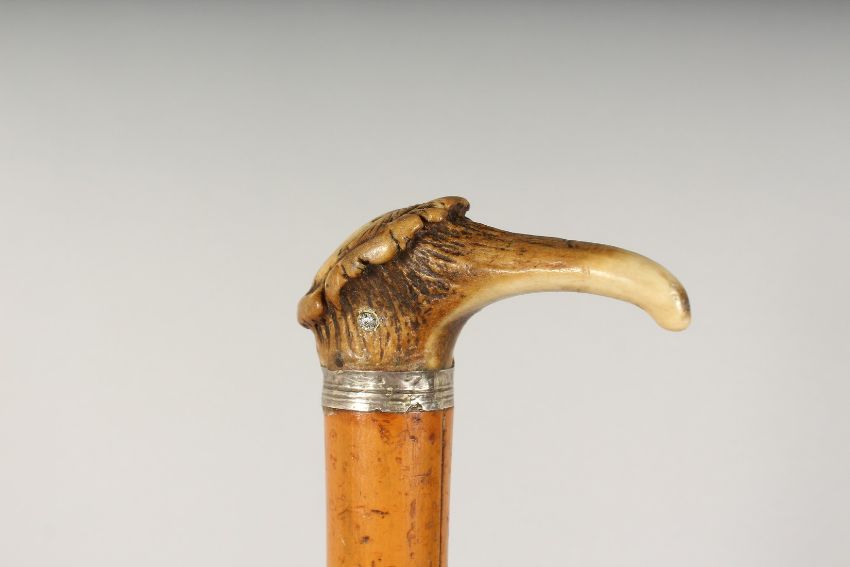 A SCOTTISH BONE BIRD HANDLE CANE.