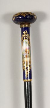 A GOOD SEVRES PORCELAIN HANDLE CANE painted with flowers