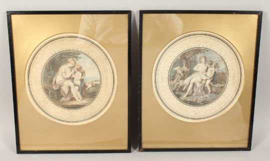 BARTOLOZZI AFTER CIPRIANI, A PAIR OF 19TH CENTURY CIRCULAR PRINTS.