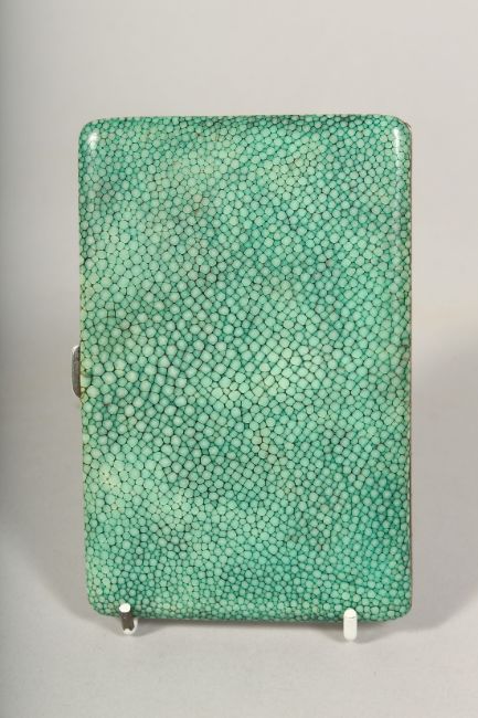 A SILVER AND SHAGREEN CIGARETTE CASE, 5ins x 3ins.