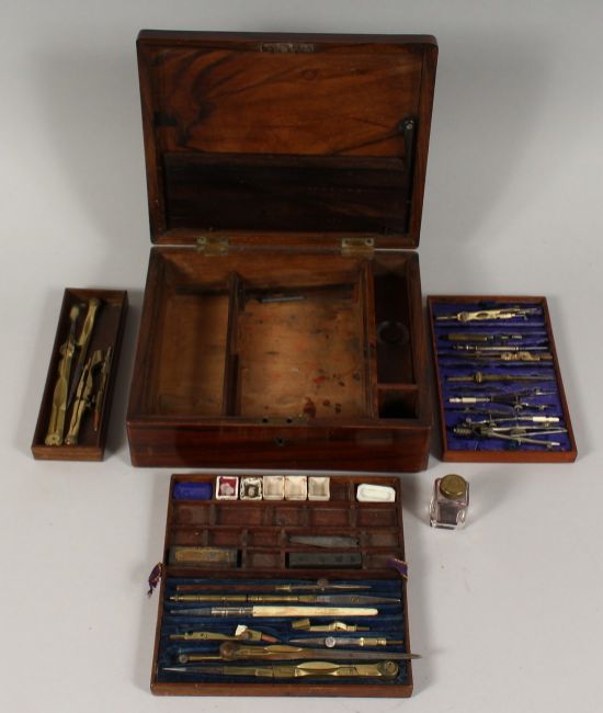VARIOUS DRAWING INSTRUMENTS in matching cases.