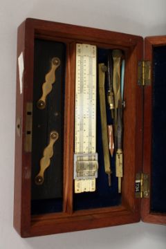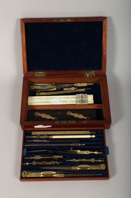 A SET OF DRAWING INSTRUMENTS in a mahogany case and a case (2).