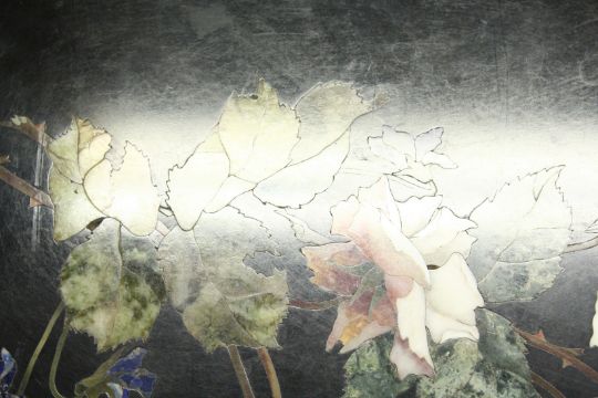 A SUPERB 19TH CENTURY DERBYSHIRE ASHFORD MARBLE TABLE inset with coloured marbles, including lapis as roses.