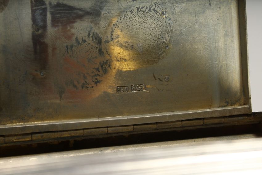 A RUSSIAN RIBBED SILVER CIGARETTE CASE with initials.