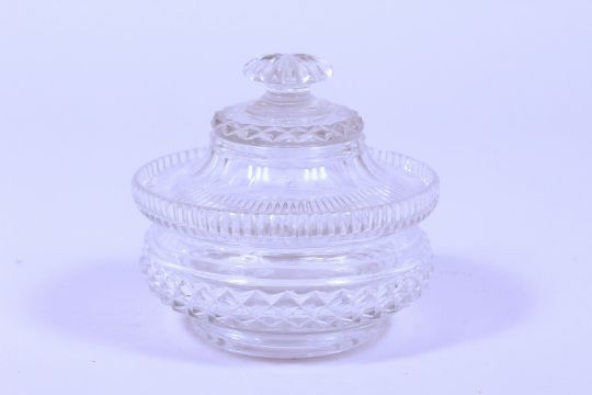 A CUT GLASS POT AND COVER AND A BOWL AND COVER (2).
