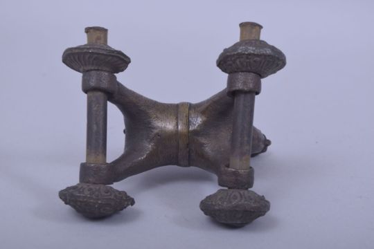 AN ISLAMIC BRONZE MODEL OF A CAMEL ON WHEELS, 11cm wide.