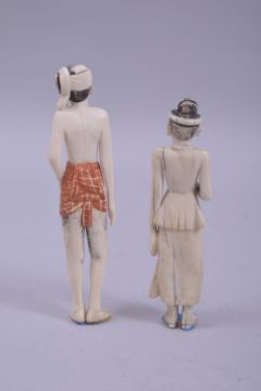 TWO 19TH / 20TH CENTURY TURKISH IVORY / BONE FIGURES, 11cm and 12cm (2).