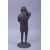 A JAPANESE MEIJI BRONZE FIGURE OF A FARMER HOLDING A PIPE, on a circular bronze base, 29.5cm high.
