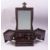 A CHINESE HARDWOOD TRAVELLING DRESSING BOX, with brass fittings including two handles, hook latch and pin lock (lacking pin), the hinged lid opening to reveal an unfolding mirror, the box comprising of six drawers and two sliding top compartments, 22cm high, 37cm wide, 27cm deep.