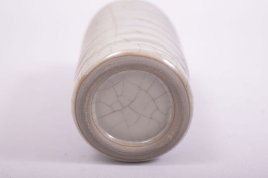 A CHINESE CRACKLE GLAZED RIBBED PORCELAIN VASE, 17cm high.