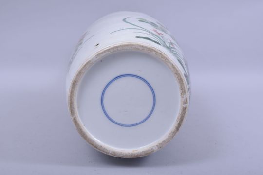 A GOOD 19TH CENTURY CHINESE FAMILLE VERTE PORCELAIN VASE, the body painted with a stylised peacock or phoenix beside a tree amongst an array of native flora, small drill hole at the foot, 46cm high.